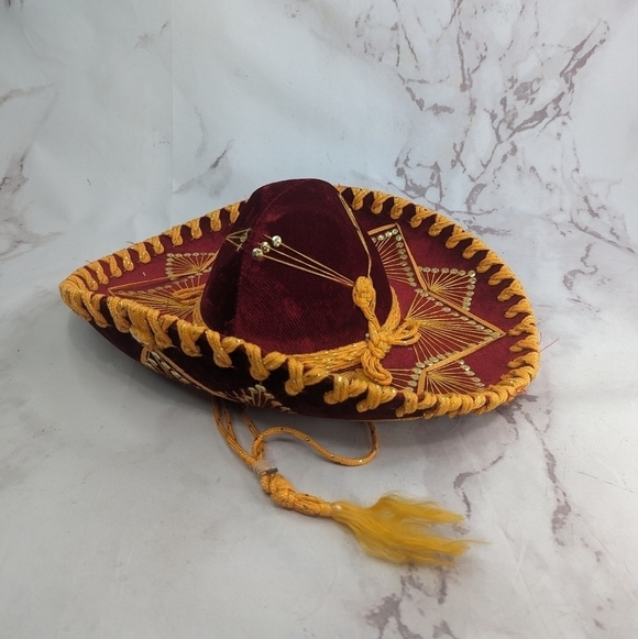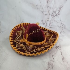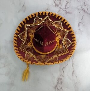 Vintage Pigalle Sombrero Mexican Hat Red Gold Sequin Velvet Yellow