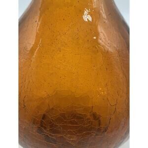 This vintage Pilgrim vase is a beautiful addition to any Mid-Century Modern collection. The hand-blown glass production technique creates a unique crackle glass texture, and the ruffle top adds a playful touch. Measuring 9 inches in height, this vase is perfect for displaying flowers or standing alone as a decorative piece. The orange color is warm and inviting, making it a great statement piece in any room. Made in the United States, this vase is a true vintage find for any collector.