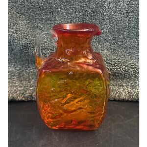 Vintage Pilgrim Glass Plymouth Amberina Square Pitcher Clear Applied Handled