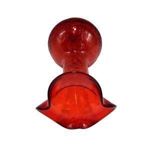 Vintage Pilgrim Hand Blown Glass Ruby Red Crackle Ruffled Top Vase WV