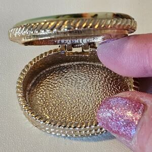 Vintage Pill Case Gold Tone Oval with Country Side Figural Painting