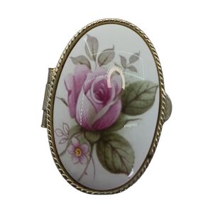 Vintage Pill/ Mints/ Trinket Box Keepsake Box Floral Rose White Procelain