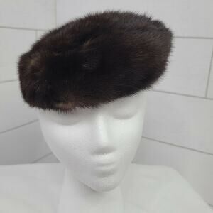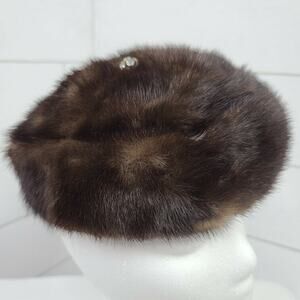 Vintage Mink Pillbox Fur Hat Brown Rhinestone Jeweled Miss Alice for Lord & Taylor