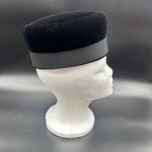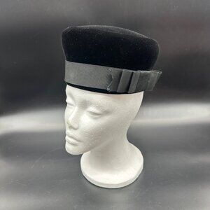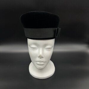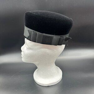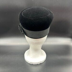 Vintage Pillbox Hat 1960s Mr John Black Velvet Jackie Kennedy Style Bow Accent