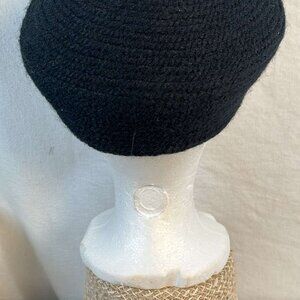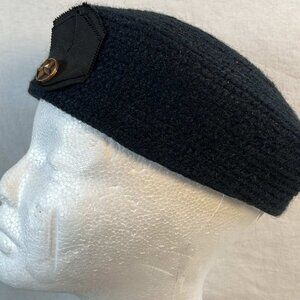 Vintage Pillbox Hat Navy Blue Grosgrain Military Vibe Button with Ribbon Everitt