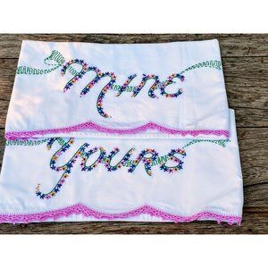 Vintage Pillow cases Embroidered "Mine" "Yours"