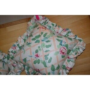 Vintage pillows in excellent condition. These two pillows are such a statement piece of the 1980s with ruffles, florals, lattice and roses. What a find, to get two from the same estate. All the rage for the current vintage trends. Can be used in living room, bedroom, sunroom and more. Romantic, sweet and pretty.