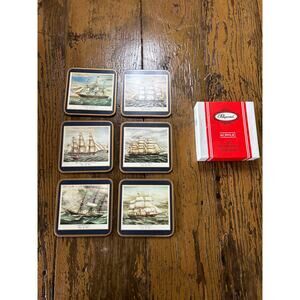 Vintage Pimpernel Coasters Set of 6 Acrylic Cork Back Nautical Clipper Ships