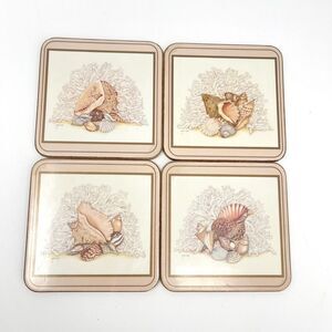 Vintage Pimpernel Coasters Maria Ryan Pink SEA SHELL Beach 4”X 4” Set Of 4