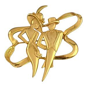 Vintage Pin Brooch Art Deco Style Gold Tone 11U