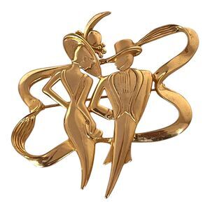 This beautiful pin is gold toned.