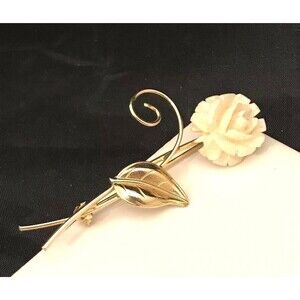 Vintage Pin Brooch Celluloid Flower Design Gold Tone Estate Jewelry 6D