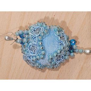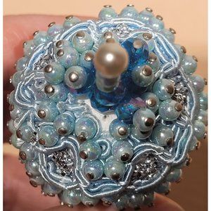 Vintage Pin Ornament Flocked Blue Handmade Sparkle Christmas
