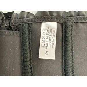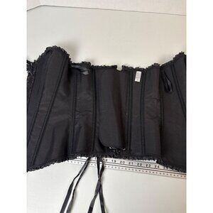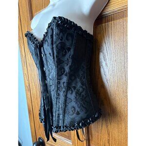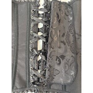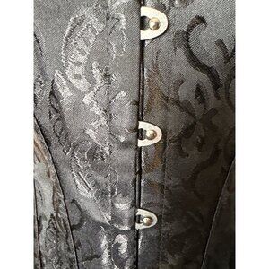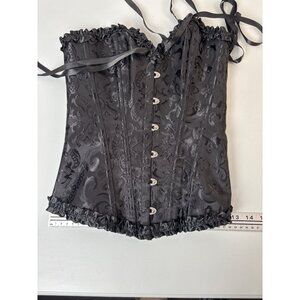 Vintage Pin Up Black Jacquard Floral Lace Up Boned Frilly Corset Bustier Top S