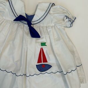 Vintage Pinafore Collared Sailboat Summer Dress 12M