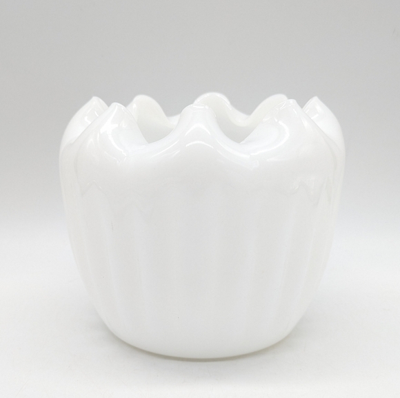 Vintage Pinch Ruffle Scalloped Edge White Milk Glass Vase