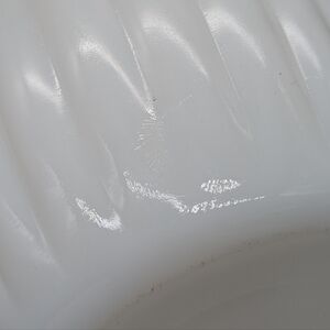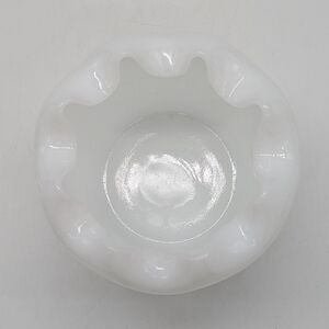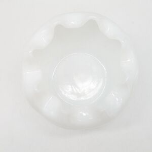 Vintage Pinch Ruffle Scalloped Edge White Milk Glass Vase. One small chip on the underside inside and a few specks (see photos)