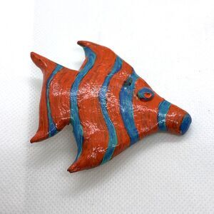 Vintage Pine Lot of 3 Handcrafted Plaster Animal Pin Brooch Fish Wolf 90s Style