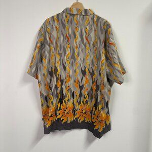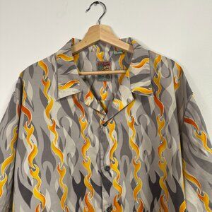 Vintage Pineapple Connection Button Front Flames Short Sleeve Shirt XL