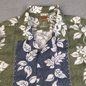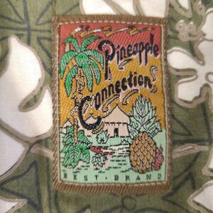 Vintage Pineapple Connection Hawaiian Shirt Mens Large Green Button Up Rayon