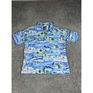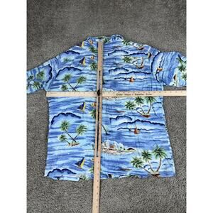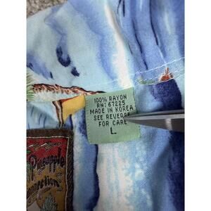 Vintage Pineapple Connections Shirt Mens Large Blue Rayon Hawaiian Aloha 90s