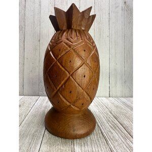 Vintage Pineapple Solid Teak Wood Made In Thailand Carved Tiki Boho Decor 8.5"