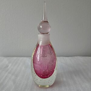 Vintage Pink Art Glass Perfume Bottle Decanter with Stopper Bullicante Bubble
