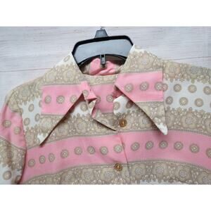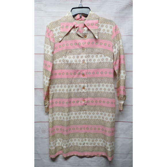 Vintage Pink & Beige Lightweight Shirt Dress 1960s 1970s Size Medium ? No Tags