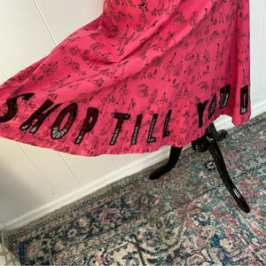Vintage Pink Black Novelty Print Skirt Shop Till You Drop Sheer Spellout Size S