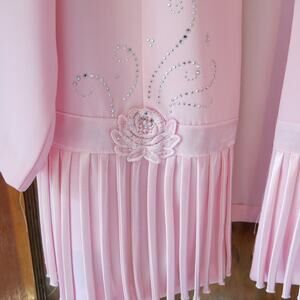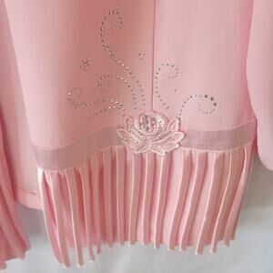 Vintage Pink Blazer Size L XL* Rhinestone Floral Applique Open Front Dressy Church