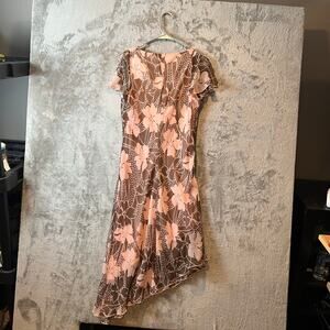 Vintage Pink Brown Floral Pattern Asymmetrical Bottom Dress Y2k Size Small