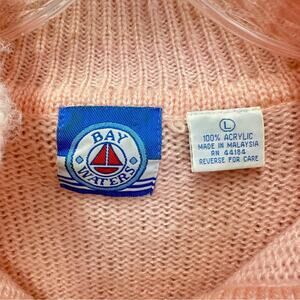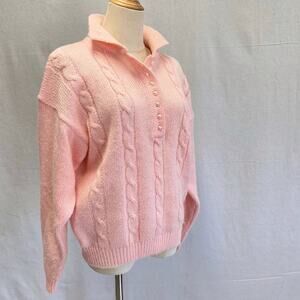 Vintage Pink Cableknit 1/4 Pearl Button Popover Polo Sweater Size Large