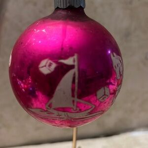 Here is a Vintage Pink Christmas Ornament Stenciled Children’s Toys Shiny Brite