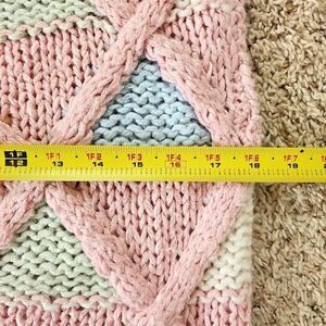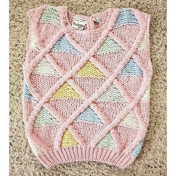 Vintage Pink Chunky Knit Sweater Vest 3D Knit Argyle 80s Pastel Fairy Kei Preppy