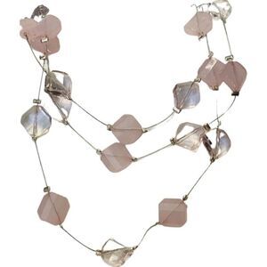 Vintage Pink Clear & Opaque Pink Faceted Beaded Silver Tone Layered Necklace