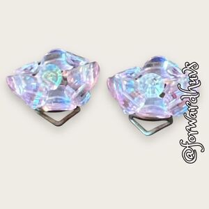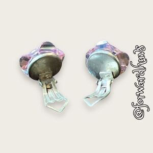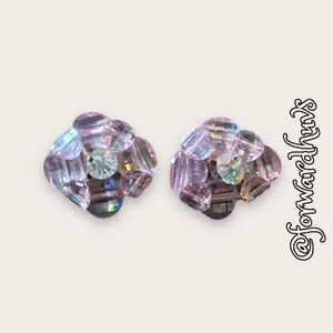 These vintage non-pierced earrings feature a timeless and elegant design, showcasing beautiful pink glass beads. Each earring is meticulously crafted with a several small pink glass beads that captures the light beautifully, creating a stunning sparkle. In the center, there is a clear round bead.