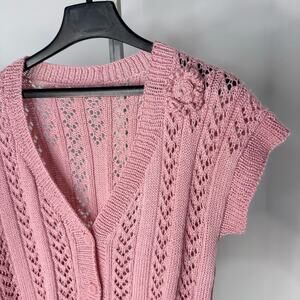 Vintage Pink Crochet Knit Cardigan Top Open Knit Coquette Y2K Cottagecore