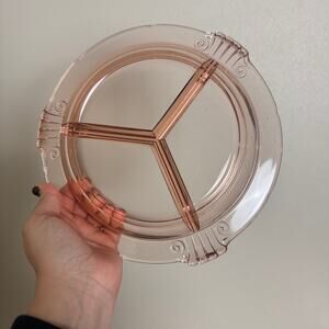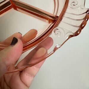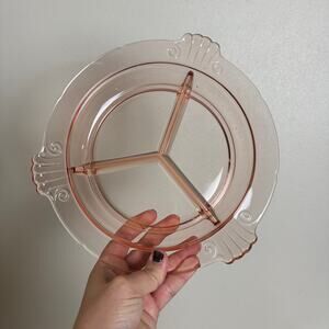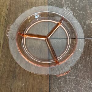 Vintage Pink Depression Divided Dinner Plate Scroll Detail