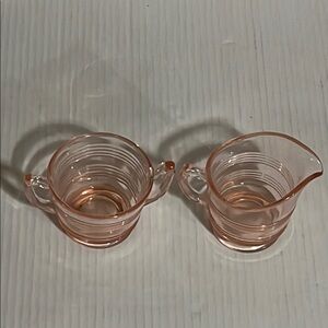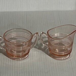 Vintage Pink Depression Glass Anchor Hocking Banded Rings Cream and Sugar