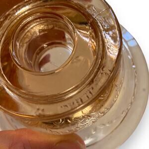 Description: Beautiful, delicate Pink rose glass depression era. This Candle holder features delicate, intricate floral patterns with a tiered pedestal look. Soft pink color, amazing MCM chic find.