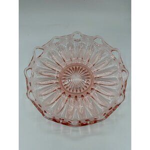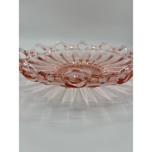 Vintage Pink Depression Glass Serving Ribbed Lace Bowl 12"