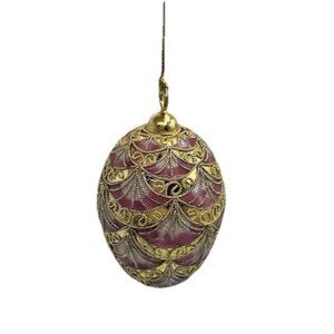 vintage enamel egg ornament, pink goldtone christmas ornament, collectible holiday ornament, elegant christmas tree ornament, vintage pink ornament, luxe holiday decor, enamel egg decoration, heirloom christmas ornament, vintage christmas collectible