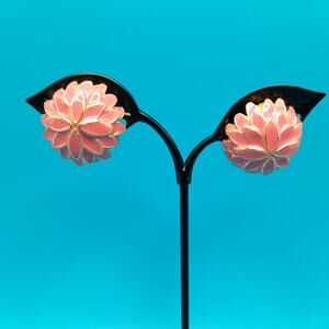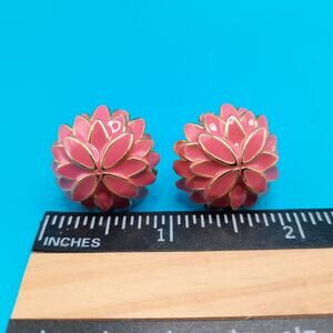 *Description: This is a beautiful pair of pink enamel floral earrings from around the 1980s. They look rarely, if ever, worn. The pads still look new on the clasps. The pink enamel is outlined in gold and the backs of the earrings are gold tone. This would be a great addition to your jewelry collection or make a great gift!