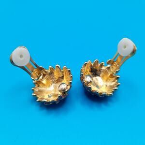 Vintage Pink Enamel Flower Clip Earrings, Gold Tone, Vintage Jewelry