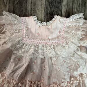 Vintage Pink Floral Lace Baby Girl Dress Size 6-9 M USA Made