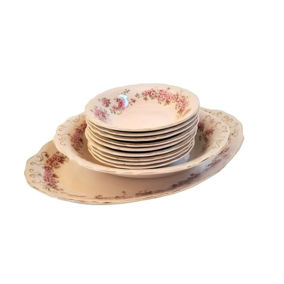 Vintage Pink Floral Ridgeway Royal Semi Porcelain Platter Bowl Dish Numbered Set