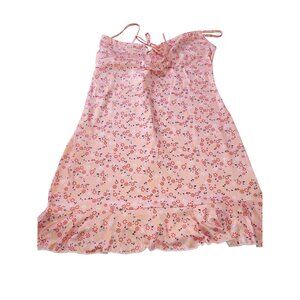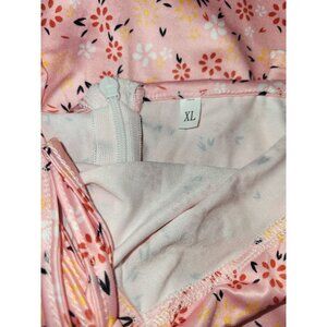 Vintage Pink Floral Spaghetti Strap Dress With Ruffle Hem XL