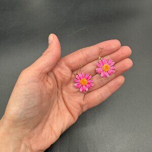 Vintage Pink Flower Power Earrings Enamel Metal 1960s Dangle Daisy Signed Art