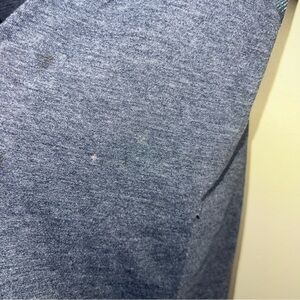 There is paint on one sleeve and distressing. A few small stains and the collar shows wear. Great shirt if that doesn’t bother you.