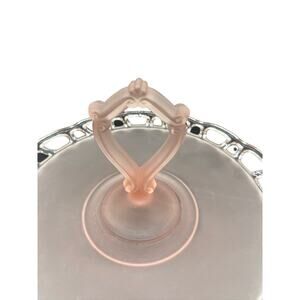 Vintage Pink Frosted Glass Serving Tray with Center Handle
